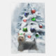 Schönes seidiges Terrier Original-Kunstwerk. Ein wunderschöner seidener Terrier ist vor einem bewaldeten Weihnachtsbaum stehend. Urlaubsgeschenke für Seidenschrecker-Liebhaber auf einer Vielzahl von Weihnachtsartikeln.