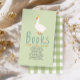 This whimsical and cute baby shower ‘books for baby’ enclosure card design features a silly goose on the loose, with a matching green gingham pattern on the back. There is space for you to ask guests to request a book to add to the new baby girl’s library, use the poem provided or create your own message!