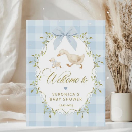 Silly Goose Blue Gingham Baby Shower Welcome Poster