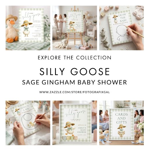 Silly Goose Sage Gingham Cards Gifts Baby Shower Poster