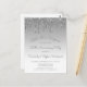 This trendy 25th wedding anniversary surprise party invitation features a sparkly silver faux glitter drip border and silver ombre background. The words "Shhh! It's a Surprise," "25th Anniversary Party" and the names of the couple appear in casual silver gray handwriting script, with the rest of the customizable text in sans serif font.