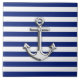 Silver Anchor on Navy Blue Stripes Fliese