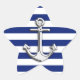 Silver Anchor on Navy Blue Stripes Stern-Aufkleber