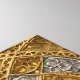 Vintages Deko-Muster mit verzierten Details und metallischem Glanz.