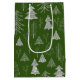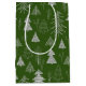 Silver and Green Christmas Tree Forest Pattern Mittlere Geschenktüte
