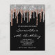 Silver and Rose Gold Glitzer Tropfen Black Birthda Postkarte