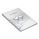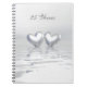 Notebook mit silberfarbenen Kunstwerken von 2 Silberherzen, die auf Wasser schwimmen. Anpassbarer Text sagt "25 Jahre".