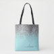 Aquamarine Aqua Blue und Silver Imitate Sparkle und Glitzer Elegante Monogram Buchbeutel. Diese Büchertasche kann auf Ihren Vor- und Vornamen angepasst werden und als Geschenk für Weihnachten, Geburtstag, Brautparty oder Hochzeit.