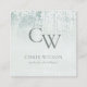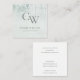 Silver Aqua Aquamarin gebürstetes Metallic Monogra Quadratische Visitenkarte