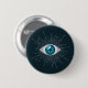 Ein bösartiger Schein, der dem Unbewussten gegeben wird. Ein hübscher aquablau-Augapfel, silber-stilisierte Wimpern mit Himmelssonne, Mond & Stern, Dreieck & Kreisformen auf aquamarinem Blau. Ein Talisman für die abergläubischen und gläubigen apotropischen Zauberer. Das schlechte Augenmotiv, ein übernatürlicher Mythos. Ein unglücklicher Blick, der in vielen Kulturen und unter vielen Namen weltweit bekannt ist. Der türkische, indische und pakistanische Nazar, der griechische Mati, in Spanien & Mexiko Mal de Ojo. Mystische Augen speziell für Männer und Frauen, die einen viel Glück-Charme oder Amulett gewollt haben, um böse Aberglaube abzuwehren. Eine niedliche, moderne und trendige Taste, Button oder Abzeichen.