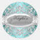 Silver & Aquamarin Damask Pearl Quinceanera Sticke Runder Aufkleber