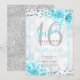 Silver Aquamarin Floral Sweet 16 Marmor Glitzer Einladung