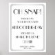 Schwarz-Weiß Art Deco Great Gatsby Hochzeit Hashtag Schild drucken Poster mit silberem Rahmen und anpassbarem Text - Sie können Ihren Text, Braut und Bräutigam Name und Hochzeitstag hinzufügen. Die Abmessungen des Zeichendrucks (Poster) sind 30 cm x 24 Zoll (vertikal).