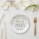 Maßgeschneiderte Graduierungsparty-Klasse von 2025 Tellern in glamourösem Konfetti-Konfetti-Muster und elegantem handgeschriebenen Stil.