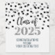 Graduation Party individuelle Weinflaschen Etiketten Klasse von 2025 mit silber und schwarz Glitzer Muster confetti.