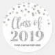 Individuelle Name-Klasse von 2019 Abschluss Aufkleber mit glamourösen silbernen Konfetti-Muster und schwarz Buchstaben Text.