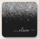 Silver Black Glitzer Script Monogram Girenname Getränkeuntersetzer