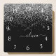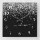 Silver Black Glitzer Script Monogram Girenname Quadratische Wanduhr