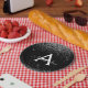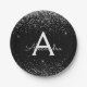 Silver Black Glitzer Sparkle Monogram Birthday Pappteller