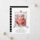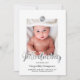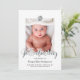Moderne und trendige Fotokarte, um Ihr neuestes Familienmitglied vorzustellen, in Schwarz, Weiß und Imitat Silberfolie, ein Foto des Babys, sein Monogramm und ein handgeschriebenes Pinselskript.