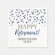 Happy Pension Servietten mit blauen und silbernen Glitzer Konfetti Muster.