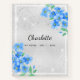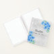 Ein Imitat silber metallisch aussehender Hintergrund, mit blauen vergessenen-nicht-floralen, Blume. Imitate Glitzer Staub. Personalisieren und fügen Sie einen Namen und Titel hinzu.