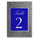 Einfache, moderne Kalligraphie-Skript, eleganter Glitzer silber und königsblau Tischnummer. Perfekte Wahl für zeitgenössische gläserne Winterhochzeiten!