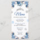 Silver Blue Winter Magic Snowflake Mis Quince Menu Card