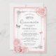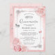 Silver Blush Pink Roses Wasserfarbe Quinceanera Einladung