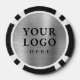 Poker chips for employees or clients to celebrate the 100th anniversary of your business. Commemorative design personalized with your company logo and the year on the front, with a faux silver metal background, a laurel branch, and stars. On the back, it has space to add a bigger logo or an image, and it can be changed to text by clicking the button to edit the design.