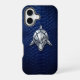 Dive into luxury with this powerful iPhone 16 case. Featuring a sleek, metallic silver geometric shark in a sharp 3D chrome style. The modern industrial art is set against a premium cobalt blue python snakeskin background, offering a sophisticated and high-end aesthetic. Perfect for those who value strength, speed, and futuristic minimalist design.