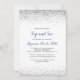 Diese silberne Konfetti minimalistisch Schluck und sehen Einladung ist perfekt für eine rustikale treffen Sie das Baby Party. Das schlichte und elegante Design zeichnet sich durch silberne Konfetti und klassische extravagante Schriftzeichen in Blau und Schwarz aus.