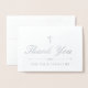 Elegantes Silber-Folie Beileid Dankeschön-Karte für einen Beerdigungsservice oder Gedenkservice mit Dankeschön für Ihr Beileid in eleganten Schriftart geschrieben und mit Silberfolie unter einem Silberkreuz bedruckt.