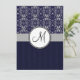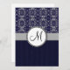 Silver Damask on Blue with Stripes and Monogram Einladung