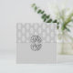 Eine sehr elegante Hochzeitsankündigung in Grau und Silber, mit einem grau-weißen Damast-Muster, silberne Ziergegenstände.