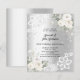 Für einen eleganten und romantischen 60. Hochzeitstag. Ein silberfarbener Hintergrund mit weißen Blumen, Rose, Imitaten, Diamanten und weißer Spitze. Personalisieren Sie Ihre Namen und Details und fügen Sie diese hinzu. 1 Blatt = 1 Einladung mit Druckkante bis Kante.