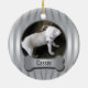 Ein prächtiger Silberhundebund mit einem Weihnachtsschmuck aus Foto. Dieses Ornament ist gestreift und bietet Ihnen die Möglichkeit, ein Bild von Ihrem bezaubernden Haustier für die Ferienzeit zu machen.