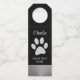 Silver Dog Paw auf schwarzem Hintergrund Flaschenanhänger