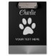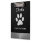 Silver Dog Paw auf schwarzem Hintergrund Klemmbrett