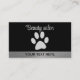 Silver Dog Paw auf schwarzem Hintergrund Terminkarte