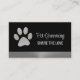 Silver Dog Paw auf schwarzem Pet Grooming Service Empfehlungskarte