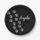 Silver Dog Paws Schwarzer Hintergrund Print Patter Pappteller