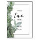 Dieses Design bietet Eukalyptus-Blätter und Zweige in Silber-Dollar. Die wunderschöne Vegetation der Eukalyptus-Blätter ergänzt den eleganten, modernen, schwarzen Rahmen, der die Hochzeitsschrift umgibt. Eine perfekte Verbindung von Moderne und Chic mit Eukalyptus silber grünen Farbtönen. Silber Grün, Schwarz und Weiß passen perfekt zu einer rustikalen Hochzeit im Grünen. Einzigartiges Hochzeitsdesign mit modernen Tischnummern. Auch die passenden Hochzeitseinladungen und andere Schreibwaren sind verfügbar. Passen Sie die Anzahl an und erwerben Sie jede Tabellennummer individuell, je nachdem, wie viele Tischnummern Sie benötigen.