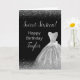 Ein wunderschönes silbernes, elegantes Aquarellkleid, das auf einem schwarzen Hintergrund mit Imitat-Glitzer oben und unten auf der Karte gekleidet ist. Der gesamte Text kann personalisiert sein, um Ihre eigenen Anforderungen zu Anzug.