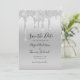 Eine elegante und trendige silberfarbene Tropfkarte für Glitzer Save the Date. Personalisieren Sie alle Bereiche der Karte. Sehen Sie sich unsere passenden Produkte in der Silver Dripping Glitzer Collection an.