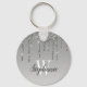 Dieser schicke Schlüsselanhänger ist mit einem silbernen Hintergrund mit glänzenden Glitzer-Tropfen aus silberfarbenem Imitat ausgestattet. Passen Sie es an mit Ihrem anfänglichen Schriftart in der weißen Serife und Ihrem Namen in dunkelgrauem Pinselskript im handgeschriebenen Stil.