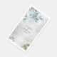 Moderne und elegante Wasserfarben bemalte Hochzeitsnapinine mit einem Strauß aus staubblauen Peronenblüten und einem silberfarbenen Aquarell-Hintergrund mit einem lebhaften, schlanken Serif-Schriftart.