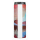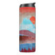 Ein wunderschönes abstraktes Landschaftsdesign mit Berg- und Waldszene und ein Adler, der auf einem Baum in lebhaften Blau-, Zyan-, Silber- und Crimsontönen landet.