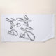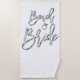 Strandhandtuch mit silberfarbenem Beach Bridge Text (aussehen, nachahmen) und Ring auf weißem Hintergrund bedruckt
