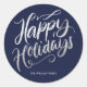 Silver Foil Calligraphic Happy Holidays Custom Runder Aufkleber